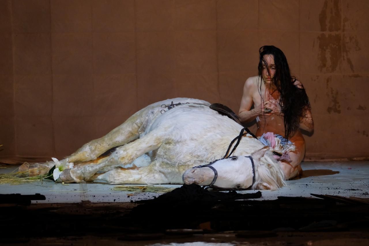 Основатель независимой театральной компании «Общество Рафаэля Санти» итальянец Ромео Кастеллуччи не раз гастролировал в России, но оперу в его постановке российским зрителям показали впервые. Выпущенный в копродукции оперных театров Перми, Лиона, Базеля и Брюсселя, спектакль на музыку оратории Артюра Онеггера на первый взгляд как будто не имеет ни малейшего отношения ни к написанному поэтом Полем Клоделем тексту либретто, ни к реальной биографии национальной героини Франции. Но главная его мысль оказывается парадоксально близкой истории Орлеанской девы: обрести себя, говорит Кастеллуччи, можно только отказавшись от привычного уклада, сломав существующий порядок вещей — и в реальной жизни, и на театральной сцене.