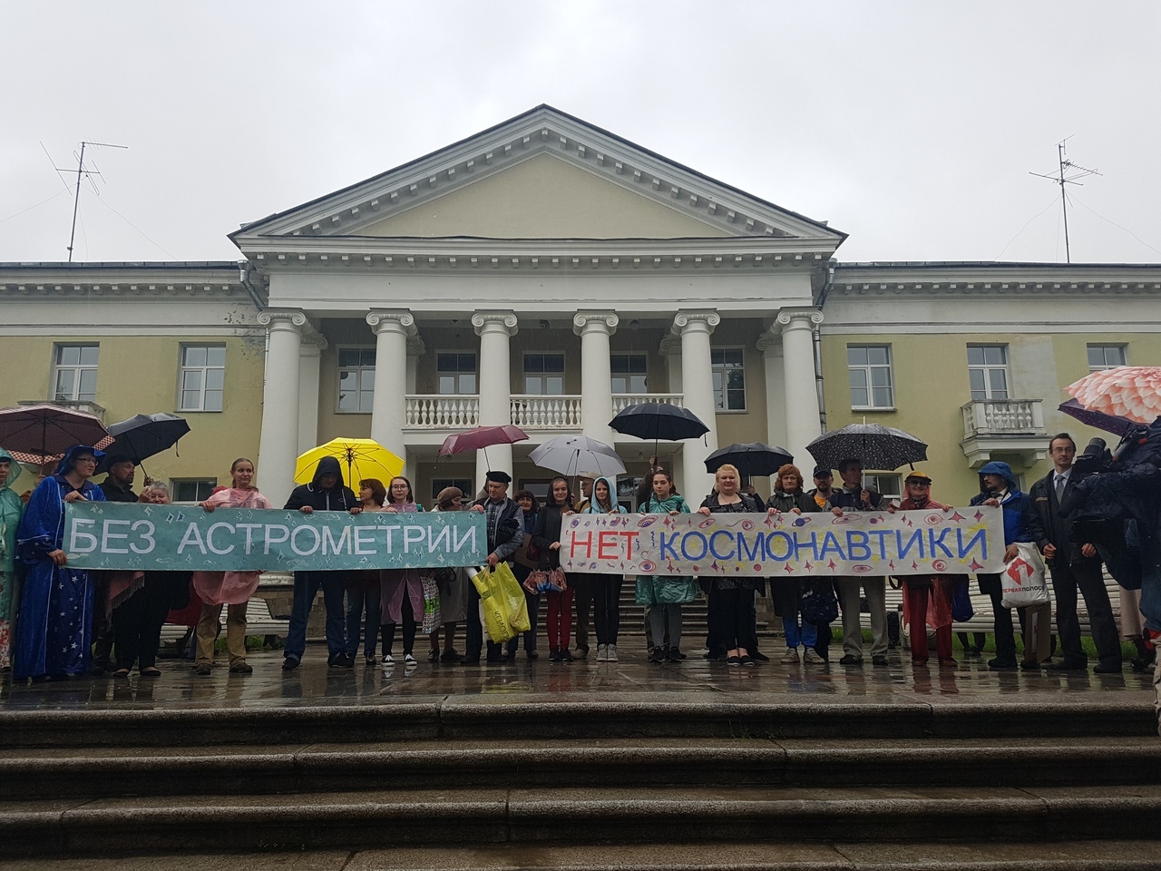 Защитники Пулковской обсерватории провели акцию против прекращения астрономических наблюдений в учреждении