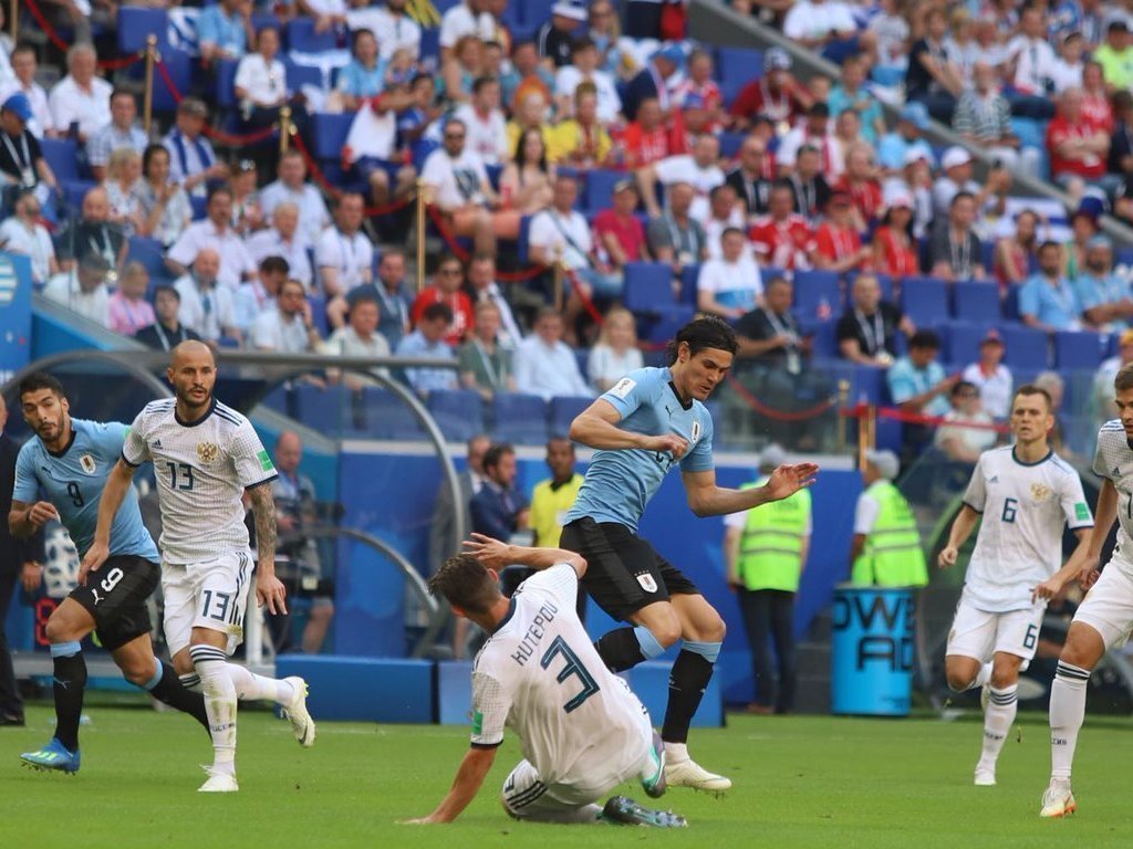 Третий гол на игре заключительного тура группового этапа чемпионата мира по футболу в Самаре забила с углового команда Уругвая в российские ворота в добавленное время после второго тайма. Счет стал 3:0 в пользу уругвайцев, и через пару минут игра закончилась.