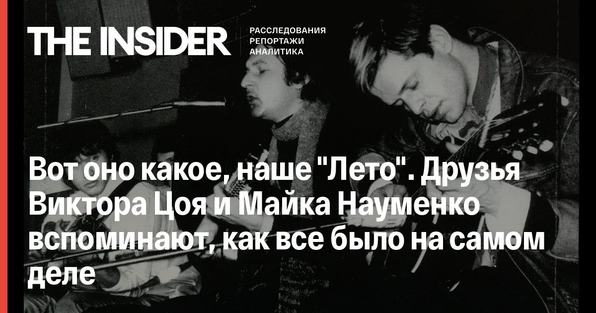 Фильм «Лето» Кирилла Серебренникова вызвал множество откликов и обсуждений еще до своей премьеры и был встречен настороженными ожиданиями. Борис Гребенщиков, прочитав первый вариант сценария, назвал картину «ложью от начала до конца». «Я лично знал людей, о которых снял фильм Серебренников. Ничего общего с героями его картины они не имеют», - сказал лидер «Аквариума» на пресс-конференции. Однако после премьеры настроение публики резко изменилось. По отзывам как критиков и профессионалов, так и зрителей премьера прошла с большим успехом. The Insider решил обратиться к людям, хорошо знавшим героев картины, чтобы те поделились воспоминаниями, которые вызвал у них фильм, прояснили реалии, стоящие за увиденным, и просто вспомнили, «что было на самом деле».