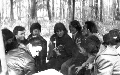 Вот такой день рождения Паши Краева и запечатлен на этом фото. Год или 1981-й, или 1982-й. В центре - Майк с гитарой, слева от него (в очках) - Саша Старцев, справа - подпевающий я и рядом со мной (в профиль) - Паша Краев. Остальных сейчас обозначить не берусь. Добавлю, что Паша устраивал «квартирники», один из которых записан и выпущен на CD московским Отделением «Выход», издавшем практически все записи Майка, за что им низкий поклон и сердечное спасибо!