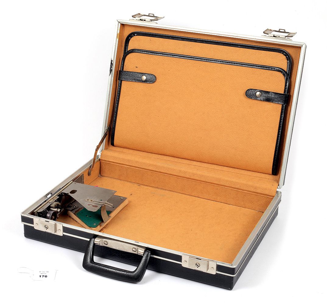 Среди других лотов, выставленных на аукционе, — камеры, замаскированные под портсигар, зонт, чемодан, дамскую сумочку и ручной фонарь. Одну камеру встроили в мужскую куртку: объектив замаскирован под пуговицу, а кнопка спуска спрятана в кармане.