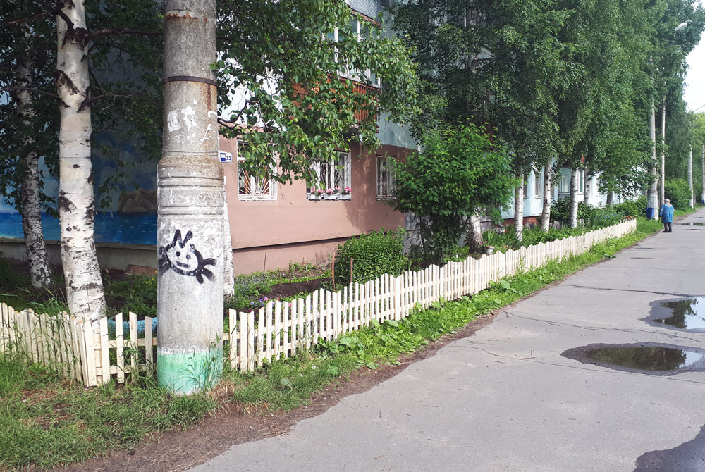 Но есть среди жильцов дома активисты с художественными навыками и вниманием к мелочам. Их силами двор играет красками, в хорошем смысле слова. Давайте оглядимся.