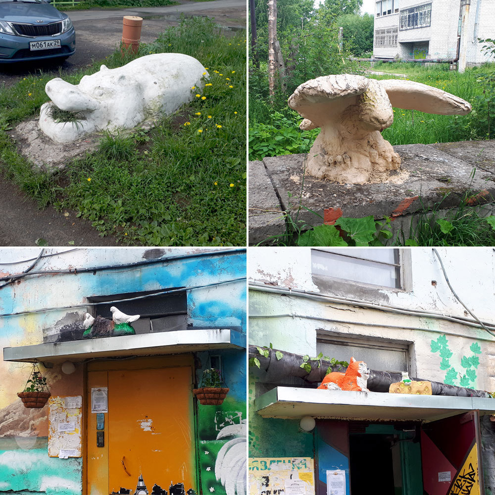 Малая архитектура — на теплотрассе и на козырьках подъездов.