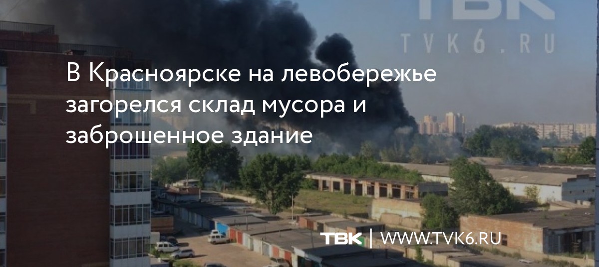 В Красноярске на левобережье загорелся склад мусора и заброшенное здание