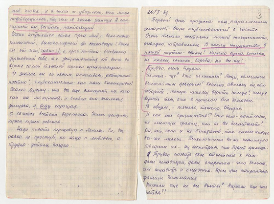 Страницы из дневника Ольги Берггольц с пометами следователя красным карандашом. 1937 1939 год