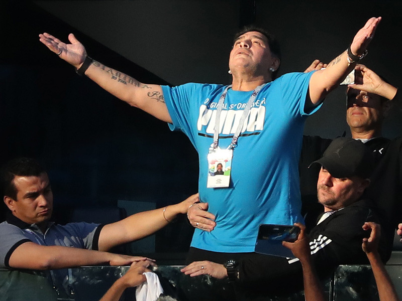 Во время матча в Санкт-Петербурге Марадона крайне бурно реагировал на происходящее, а победный гол соотечественников за несколько минут до финального свистка отметил криком и вздернутыми вверх средними пальцами. Как утверждает местный портал "Фонтанка" со ссылкой на очевидцев, бывший футболист пребывал в состоянии либо наркотического, либо алкогольного опьянения.