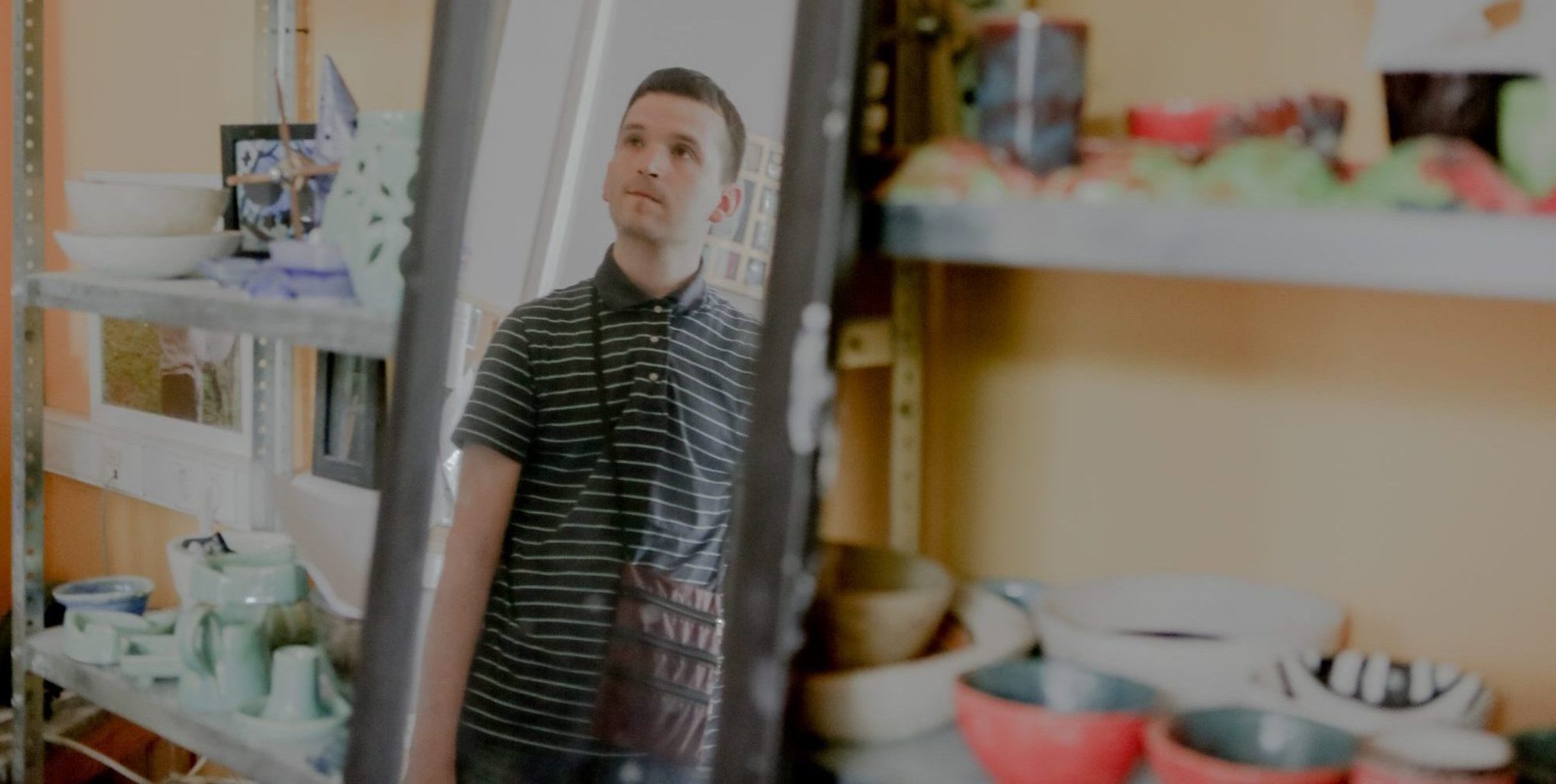 Пока таких мест нет, Саша уже пятнадцать лет работает в центре социальной реабилитации «Турмалин». Он здесь с первого года. Старожил. Сначала несколько лет осваивал гончарное производство и даже придумал свой собственный дизайн украшения изделий — скрученными «улитками», потом перебрался в свечную мастерскую. Он знает все процессы и этапы свечного производства, умеет обращаться с термостатом и всегда готов помочь тем, кому трудно. У кого-то сложности с мелкой моторикой, для кого-то поэтапное производство свечи от нарезки фитиля до упаковки готовой, дурманяще пахнущей натуральным воском свечи как квантовая физика. Саша мнет вощеные листы своими длинными музыкальными пальцами.