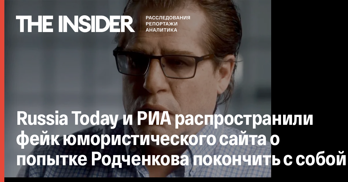 Russia Today и РИА распространили фейк юмористического сайта о попытке Родченкова покончить с собой