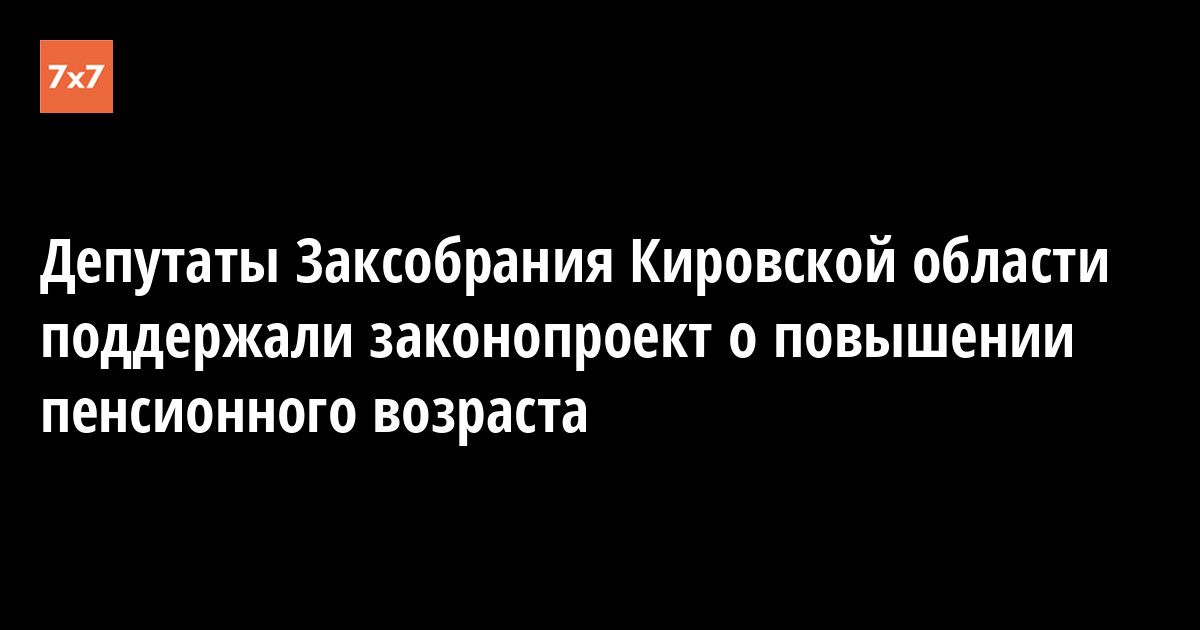 Парламент Кировской области на пленарном заседании 28 июня одобрил законопроект о повышении пенсионного возраста, внесенный в Госдуму правительством России, сообщает корреспондент «7x7».