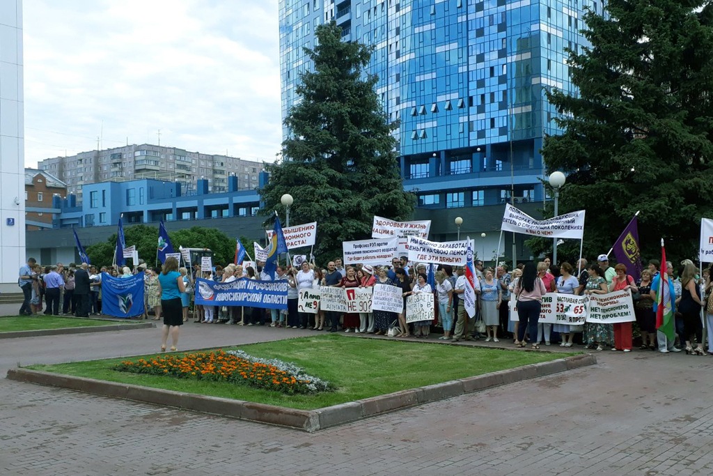 Федерация профсоюзов Новосибирской области устроила пикет утром 28 июня. В нем участвуют более 350 человек, передает корреспондент Тайги.инфо.