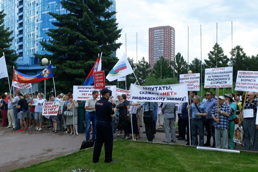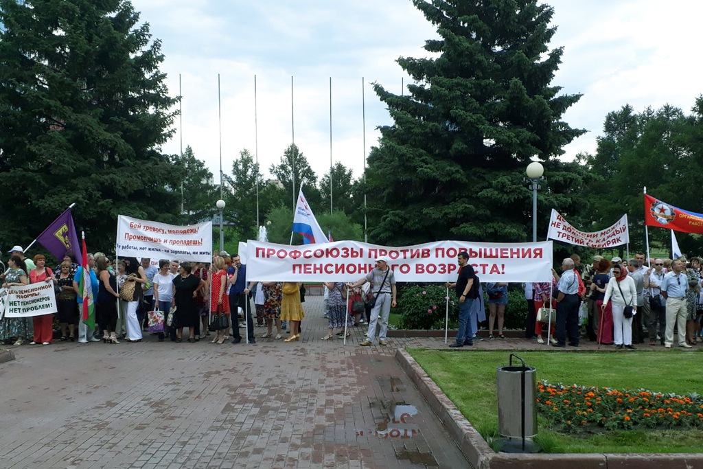 Пикет против повышения пенсионного возраста прошел у здания новосибирского заксобрания 28 июня. Жители потребовали от депутатов, которые собрались на очередную сессию, поддержать их борьбу против федеральной реформы.