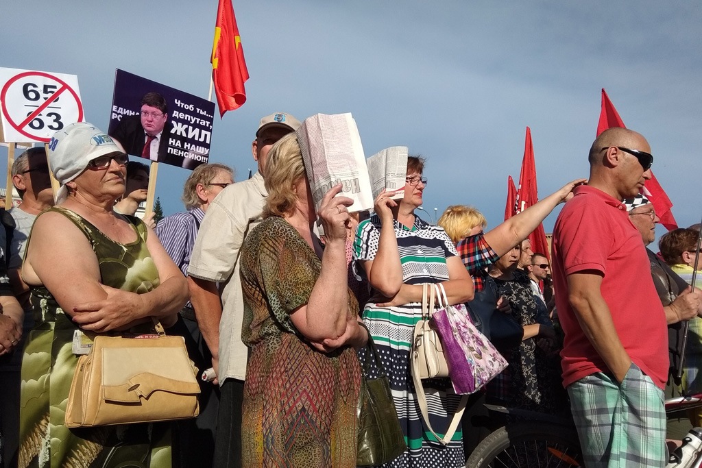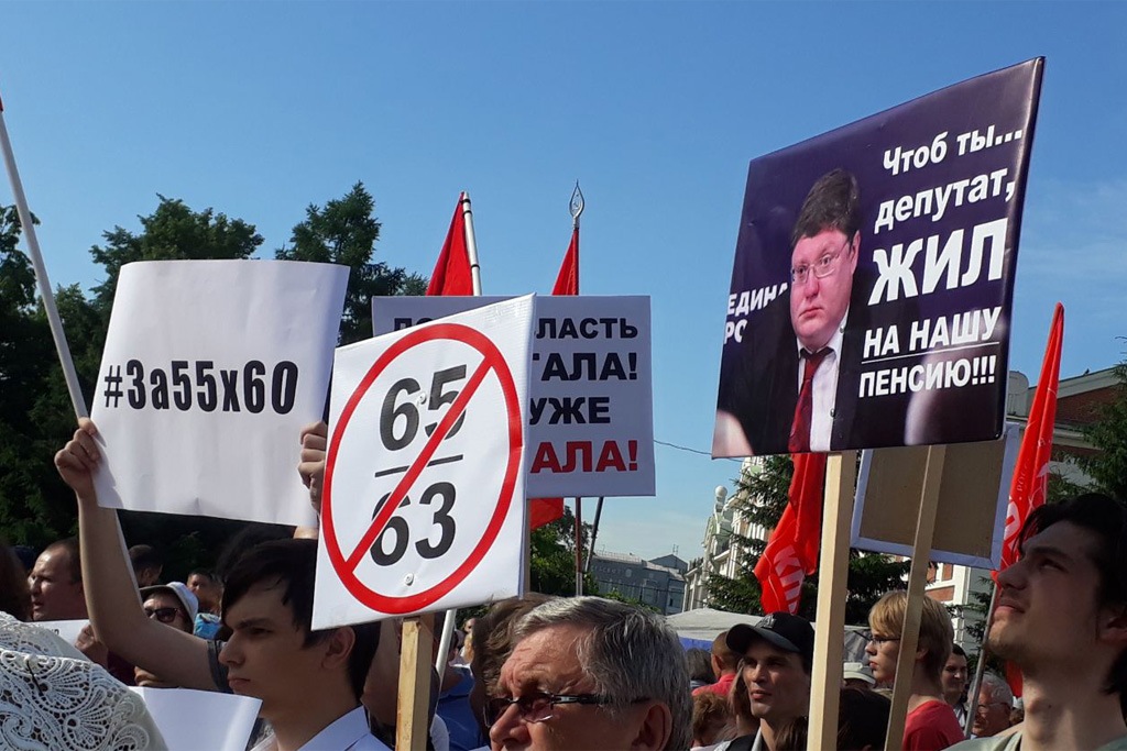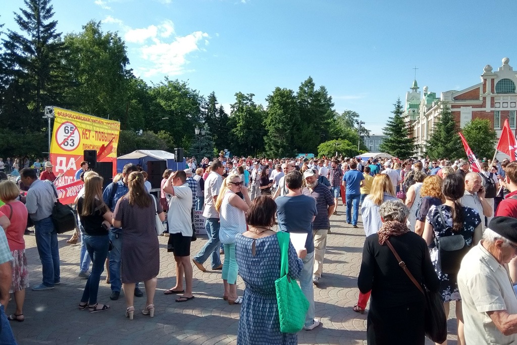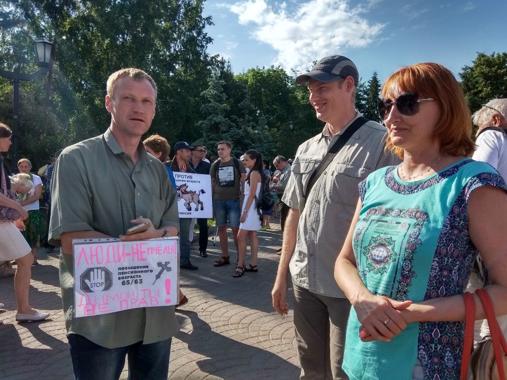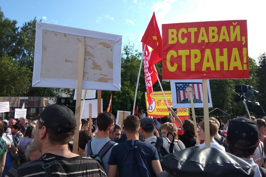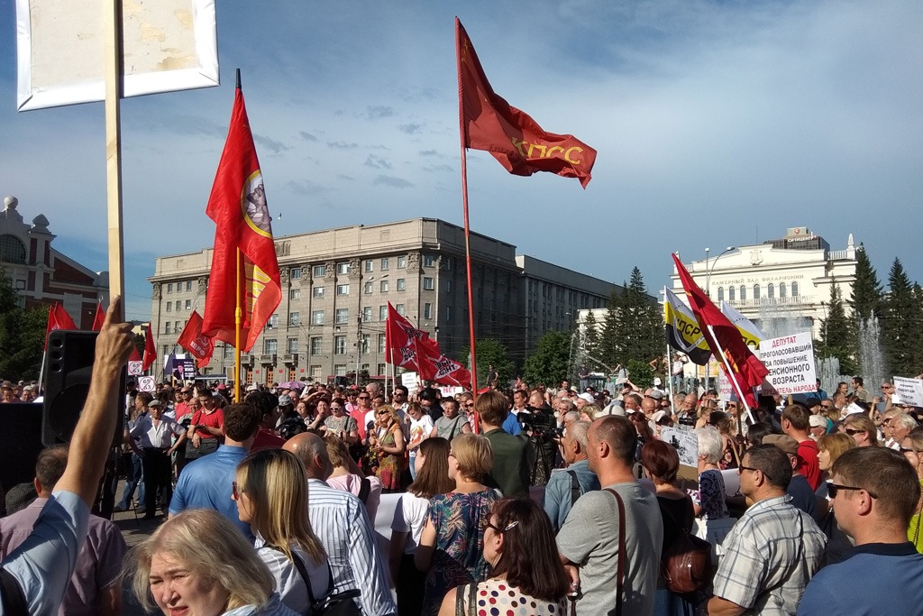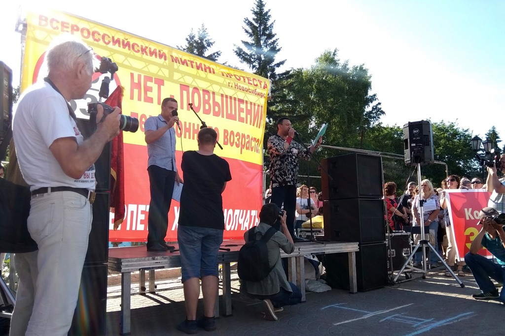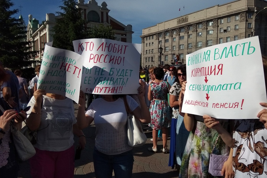 Первый митинг против повышения пенсионного возраста и НДС прошел в Новосибирске 16 июня. На него пришли, в основном, представители левых сил и «Пенсионеров за достойную жизнь».