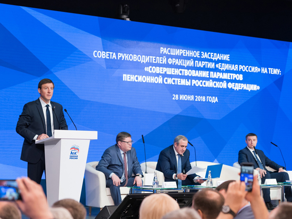 Как пишет газета «Коммерсантъ», 28 июня «Единая Россия» в закрытом режиме обсуждала с регионами планирующуюся пенсионную реформу. В обсуждении принимали участие представители правительства и премьер-министр Дмитрий Медведев, который также является лидером ЕР.