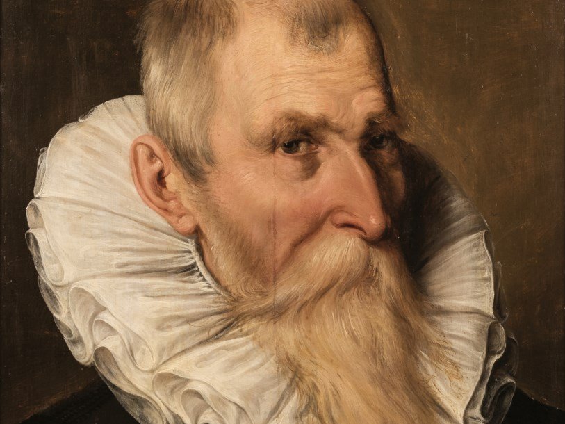 Портрет написан маслом на дубовой доске. Личность элегантного бородача в белом воротнике, изображенного на портрете, неизвестна. Специалисты полагают, что картина была написана Рубенсом между 1590 и 1609 годами. Впервые упоминается она в 1740 году, когда ее продали в городе Турне. Тогда она признавалась подлинной работой Рубенса. Но позже историки искусства стали колебаться с ее атрибуцией. Иногда они признавали авторство Рубенса, иногда склонялись к тому, что ее написал современник Рубенса Франс Пурбус Младший (1569 – 1622), известный портретист своего времени.