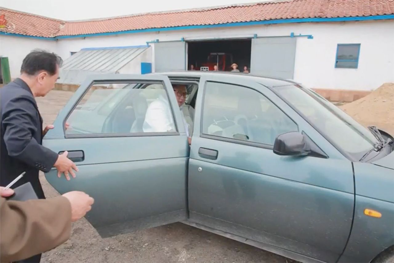 Судя по кадрам, которые распространило северокорейское телевидение, во время поездки лидер КНДР передвигался на автомобиле российского производства — зеленой «Ладе Приоре».