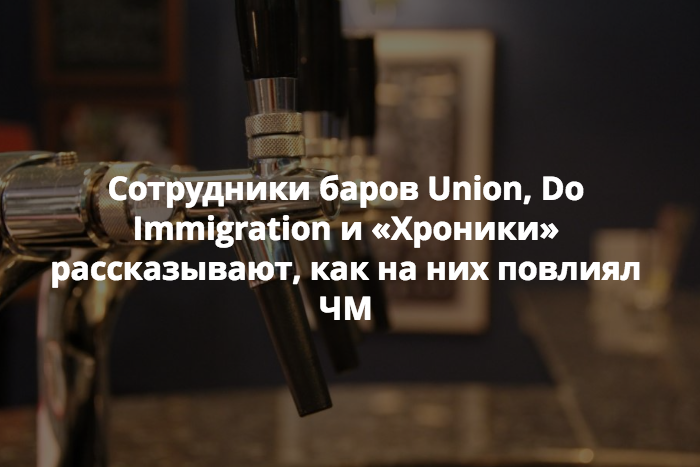 Руководители баров Mishka, Union, Do Immigration, «Хроники» и Barbara рассказали «Бумаге», чем отличается этот туристический сезон от предыдущих, почему они решили проводить закрытые трансляции и за что не любят ЧМ.