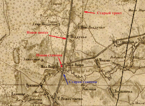 Второй пример — объект культурного наследия федерального значения с названием «Здание почтовой станции, где останавливался Пушкин Александр Сергеевич». В связи с ремонтными работами в 2017 году проводилась очередная историко-культурная экспертиза, опубликованная на официальном сайте Комитета по культуре Ленинградской области 27 февраля 2017 года2. Но здесь смущают несколько фактов. Первый: почему в названии объекта фигурирует «здание», где останавливался А. С. Пушкин, при том что здание почтовой станции, по данным экспертизы, утвержденной в 2017 году, было построено между 1836–1843 годами? Нам могут возразить: мол, на этом месте могла стоять старая почтовая станция, где и останавливался поэт. Но если это было другое здание станции, то почему тогда не назвать объект честно: «место, на котором стояло старое здание почтовой станции, где останавливался А. С. Пушкин»? Нет, не пишут. Хотя даже если бы и так написали, то это всё равно было бы искажением действительности, поскольку почтовая станция на старом Белорусском тракте находилась не там, где была поставлена станция на построенном в конце 1830-х — начале 1840-х годов новом участке Динабургского шоссе. Существующая музеефицированная почтовая станция находится почти в 300 м западнее старого Белорусского тракта. На картах и космоснимках этот тракт читается в виде грунтовой дороги Старое Колено — Новое Поддубье – Выра. Из архивного описания Белорусского тракта, выполненного в 1820-х годах, следует, что почтовая станция Выра находилась в 71 сажени от 26-го верстового столба по тракту. Сразу после верстового столба начиналась дамба и мост через Оредеж. Так что, скорее всего, старая почтовая станция в Выре находилась почти в 600 м от той, что была построена в 1839–1840 годах. Неизвестны причины, почему эксперты, ссылаясь на стр. 8 на императорский указ, проигнорировали содержавшиеся в нем сведения. Может быть, им хотелось (или так поручили?) хоть как-то совместить даты жизни Пушкина с датировкой памятника федерального значения. Но станцию в Выре не могли начать строить в 1836 году, как это утверждают эксперты, поскольку в соответствии с п. 3 докладной записки министра внутренних дел, утвержденной именным указом императора от 4 апреля 1836 года, в 1836 году необходимо было приступить к постройке только пяти станций — Новоселье, Городец, Катежно, Моховая и Кресты, а по остальным — представить предварительные соображения по отводу или приобретению земли и составление смет на постройку почтовых домов. Что касается более точной датировки создания станционных построек в Выре, то можно обратиться к другим источникам. Так, например, в Прибавлении № 62 к Санкт-Петербургским ведомостям от 17 марта 1839 года было опубликовано объявление о предстоящих 3 апреля 1839 года торгах на постройку по Динабургскому шоссе на станции Выра каменного почтового дома. Таким образом, существующая станция на Киевском шоссе не могла быть построена ранее 1839 года и поэтому не может быть связана с именем Пушкина, умершего 29 января 1837 года. Кроме того, в архивах сохранились сведения о завершении строительства станционных зданий осенью 1840 года. Но, судя по всему, ответственных лиц не интересуют реальные факты, поскольку им хочется иметь почтовую станцию, на которой должен был останавливаться Пушкин и служить прототип станционного смотрителя Самсона 
