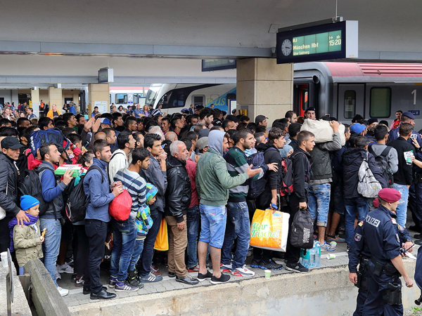 Австрия. Мигранты на Западном железнодорожном вокзале Вены 5 сентября 2015 года, ожидающие поезда в ГерманиюBwag/Wikimedia Commons