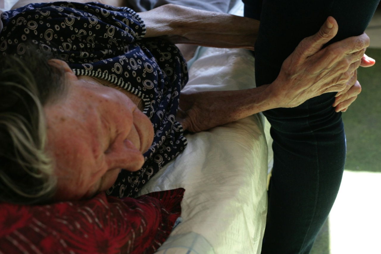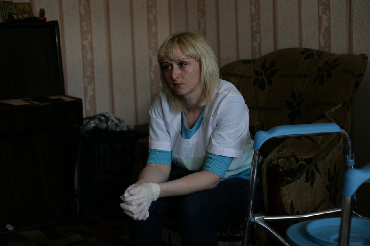 Общаясь с родственниками, нередко приходится проявлять жесткость. Вместе с Татьяной мы едем на такси к одной из подопечных семей. Панельная пятиэтажка, пустой коридор, в квартире — старые выцветшие ковры на стенах. Лежачая больная Татьяна Ивановна — бабушка за восемьдесят, бывшая начальница железнодорожной станции, властная и авторитарная женщина. Не первый год не встает с кровати, но до сих пор знает, где какая вещица лежит и какое платье висит. С каждым годом ей хуже и хуже, но она не хочет принять, что суставы уже не позволяют ходить, — и несколько раз порывается подняться.