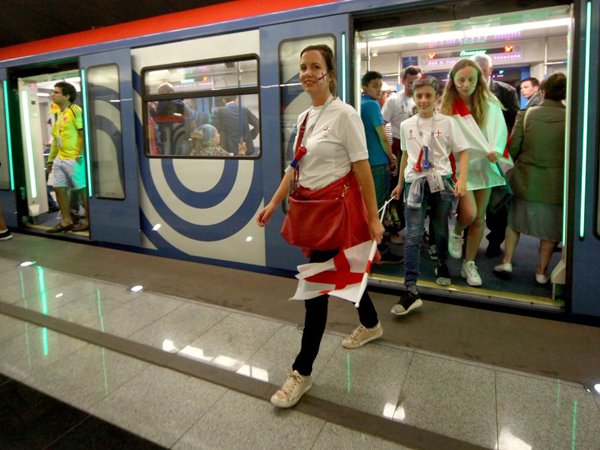 Болельщица английской сборной в метро Ведяшкин Сергей/АГН "Москва" Но эти политические соображения не очень убедительны для граждан, которые и так уже недовольны тем, что из-за политических разборок в Россию отправилось гораздо меньше болельщиков, чем могло бы, потому что руководство страны стремилась свести к минимуму причастность к чемпионату. Значительная часть фанатов осталась дома слушать трансляции по BBC.