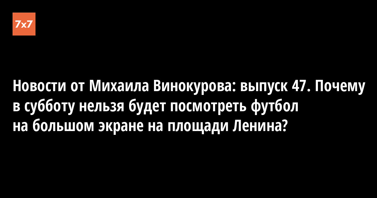 Новости от Михаила Винокурова: выпуск 47. Почему в субботу нельзя будет посмотреть футбол на большом экране на площади Ленина?