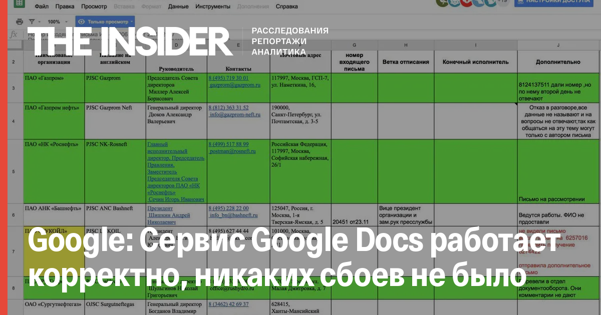 «Cохранять и защищать личную информацию пользователей — наш главный приоритет. Сервис „Google Документы“ является высоко защищенным инструментом для совместной работы, и он работает корректно», — говорится в сообщении компании.