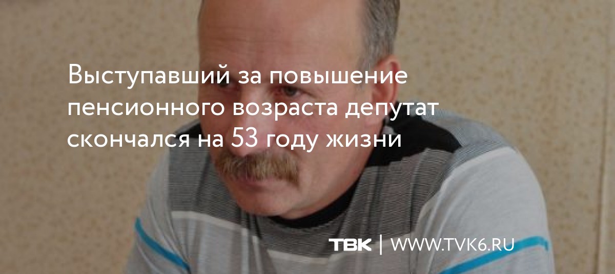 Выступавший за повышение пенсионного возраста депутат скончался на 53 году жизни