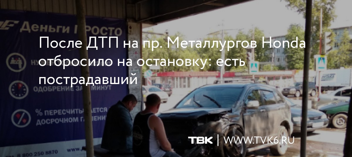 После ДТП на пр. Металлургов Honda отбросило на остановку: есть пострадавший