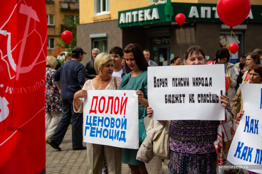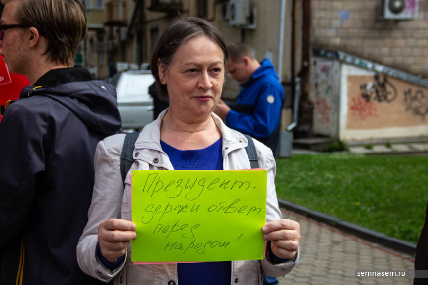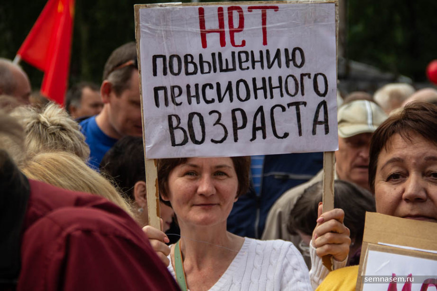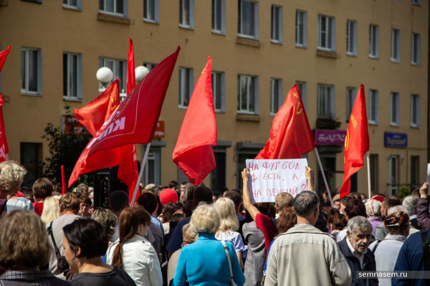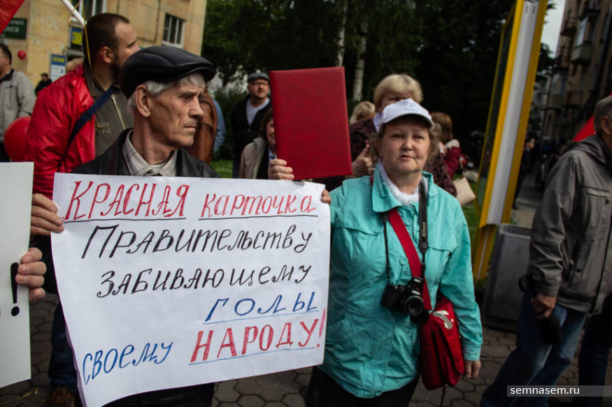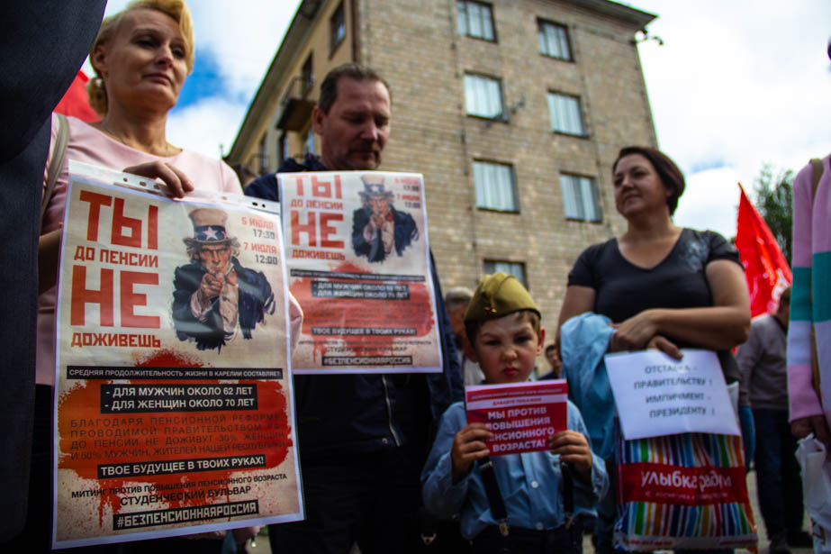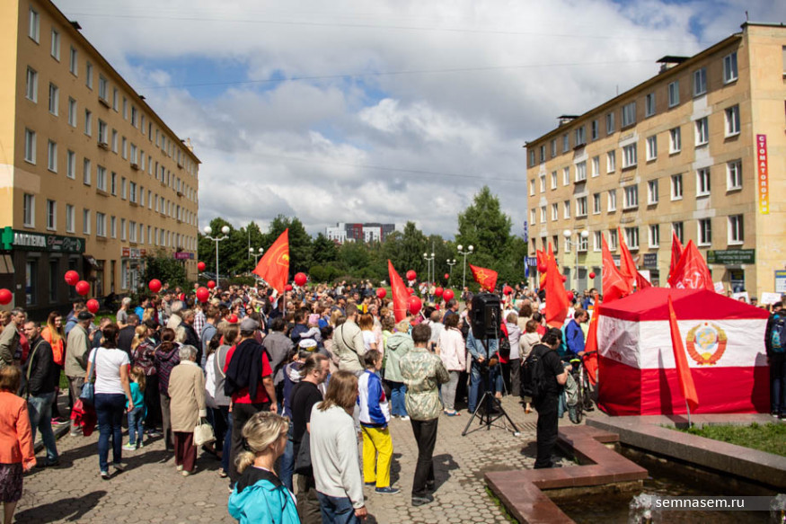 5 июля на площадке в устье реки Лососинка прошел первый митинг против пенсионного возраста, который собрал около 500 человек. Люди потребовали ввести шестичасовой рабочий день, а также отставки правительства и Дмитрия Медведева.