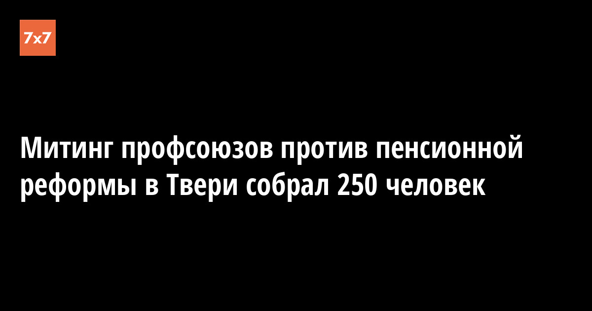 На митинг Федерации тверских профсоюзов против пенсионной реформы, состоявшийся 7 июля, пришло 250 человек. Об этом «7x7» сообщил собеседник, участвовавший в акции. Митинг прошел без задержаний.
