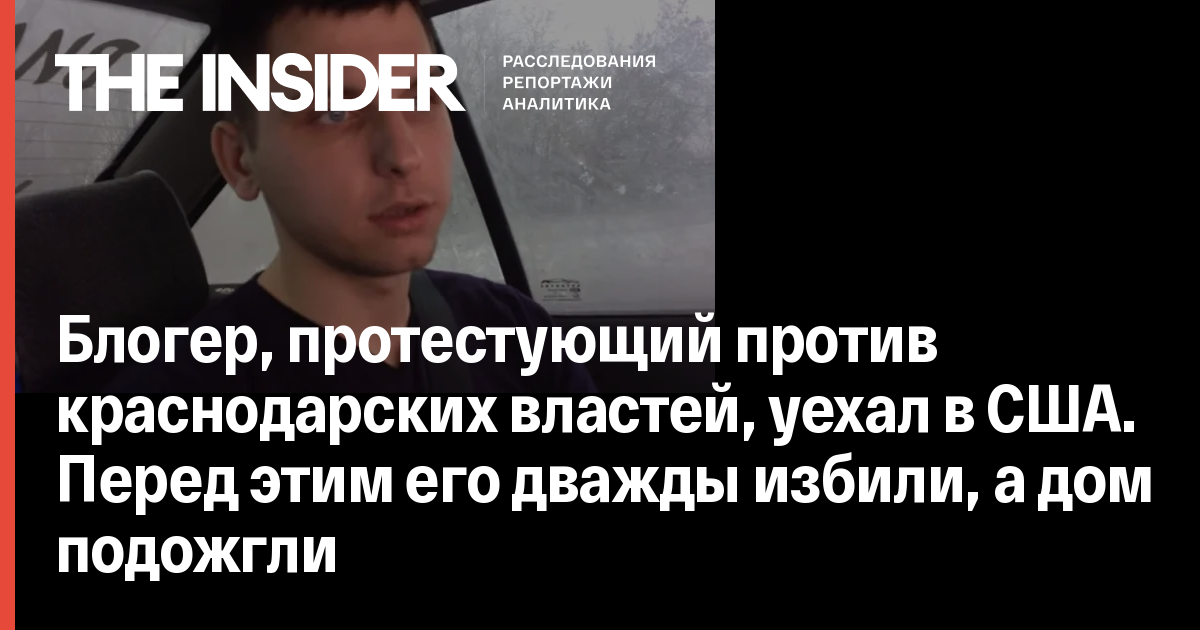 Блогер, протестующий против краснодарских властей, уехал в США. Перед этим его дважды избили, а дом подожгли
