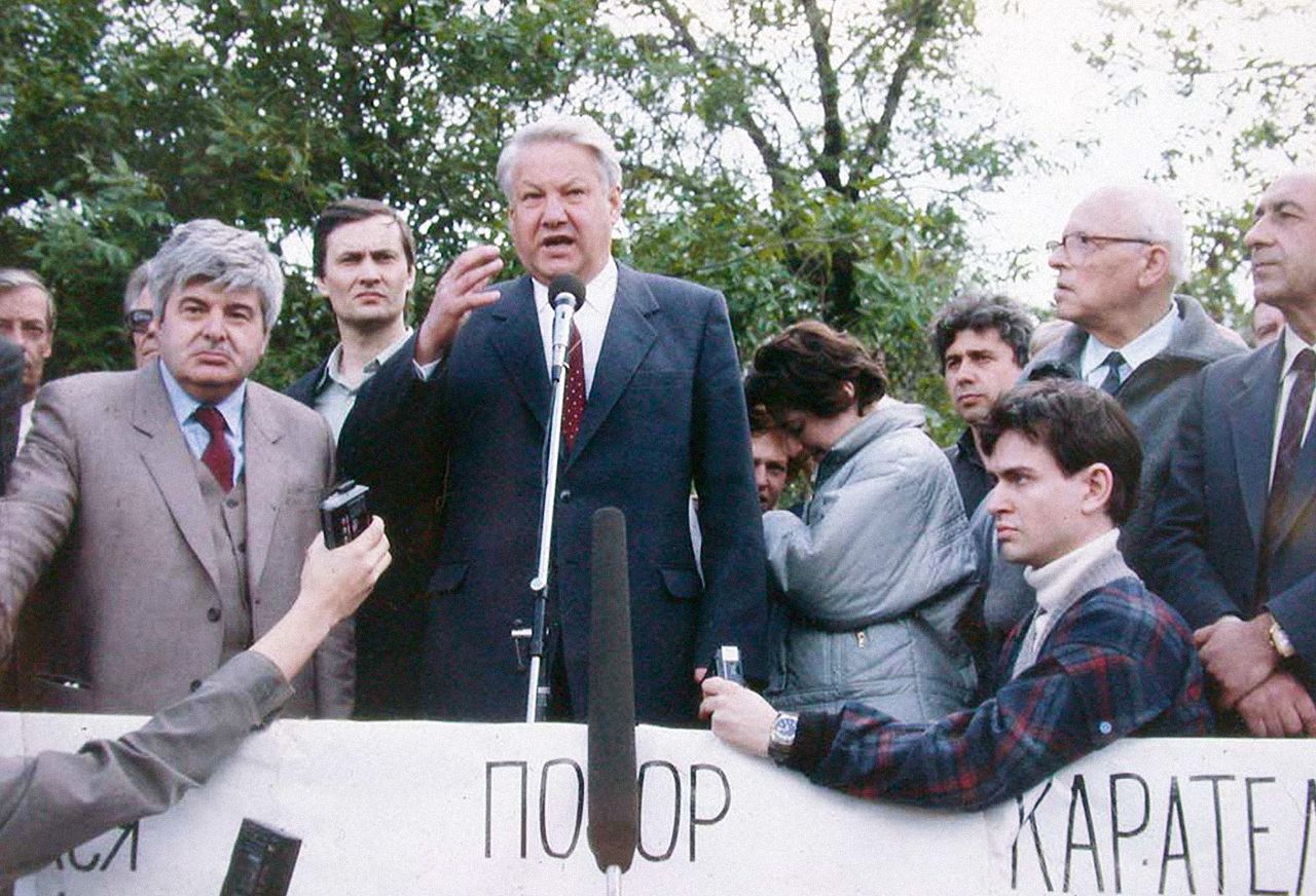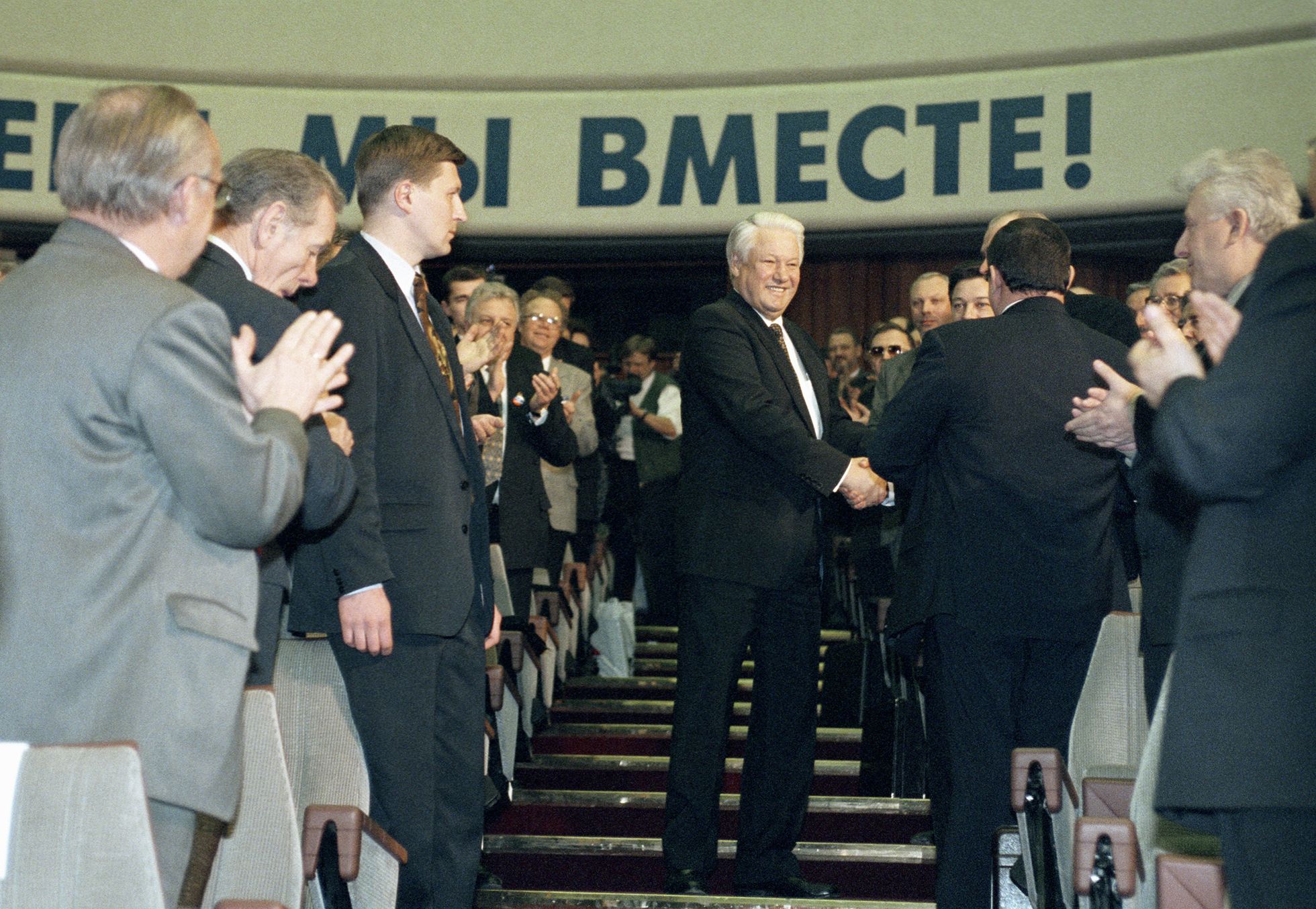 Дмитрий Донской / Sputnik / Scanpix / LETA Борис Ельцин на съезде движения в поддержку выдвижения его кандидатуры на выборах в Москве, 6 апреля 1996 года
