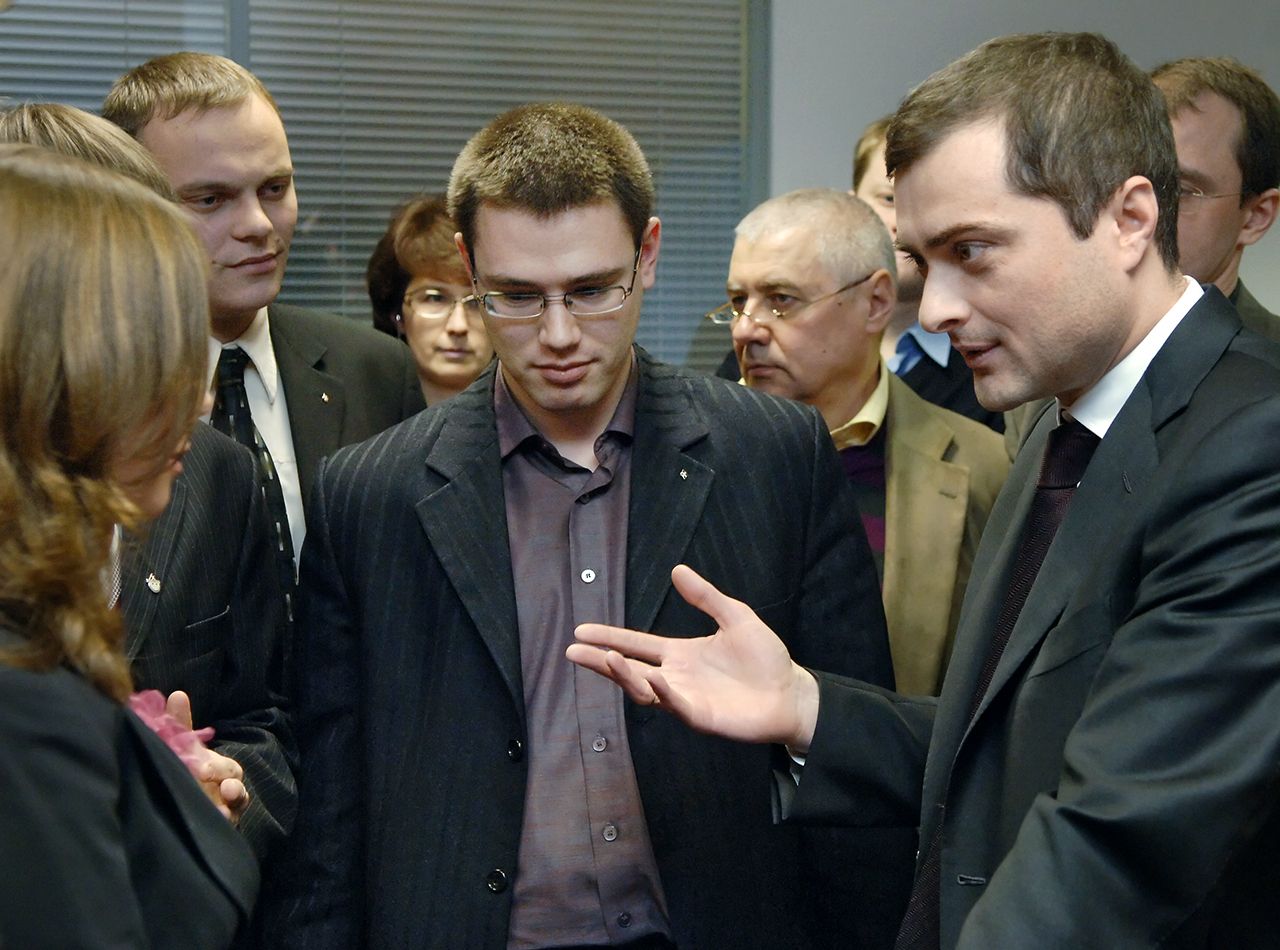Григорий Сысоев / ТАСС Замглавы АП Владислав Сурков (крайний справа) встречается с лидерами прокремлевских молодежных движений. На заднем плане — Глеб Павловский. Москва, 31 января 2007 года