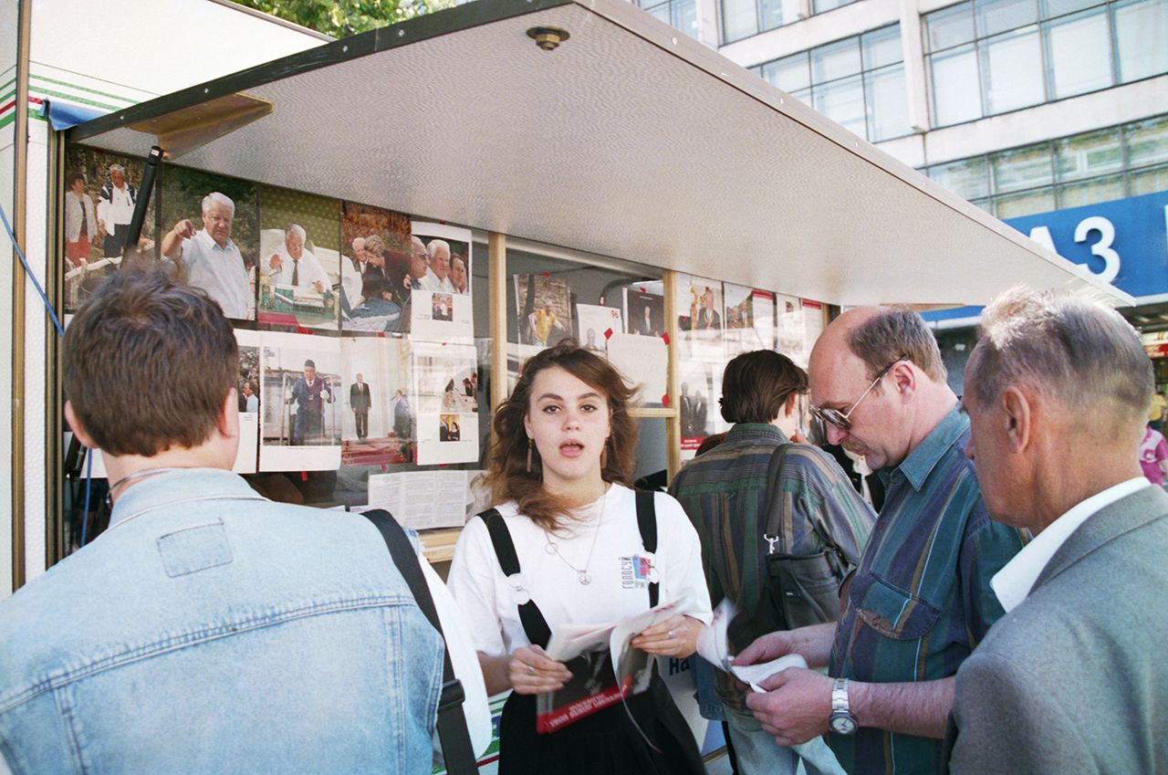 Ираклий Чохонелидзе / ТАСС Агитационный стенд в поддержку Бориса Ельцина в Москве, 9 июня 1996 года