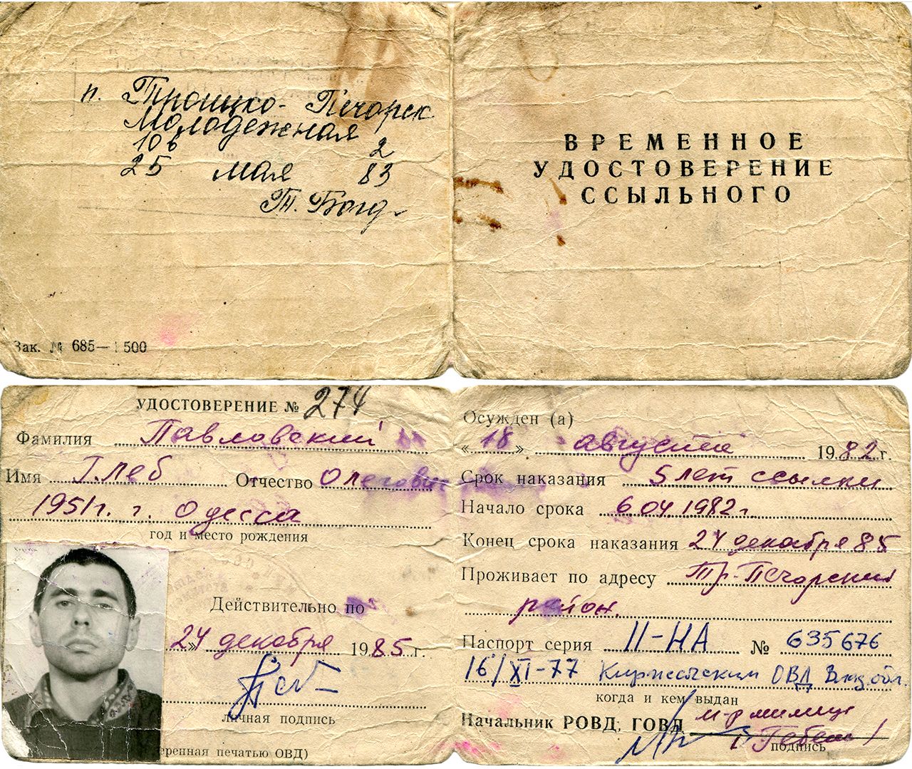 Из архива Глеба Павловского Удостоверение ссыльного, выданное Павловскому