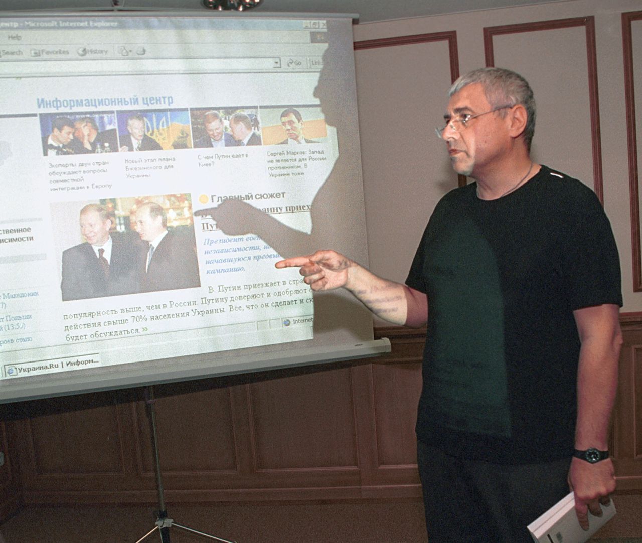 Алексей Мякишев / Коммерсантъ Павловский на презентации сайта «Украина.Ru» в «Александр-хаусе», 23 августа 2001 года