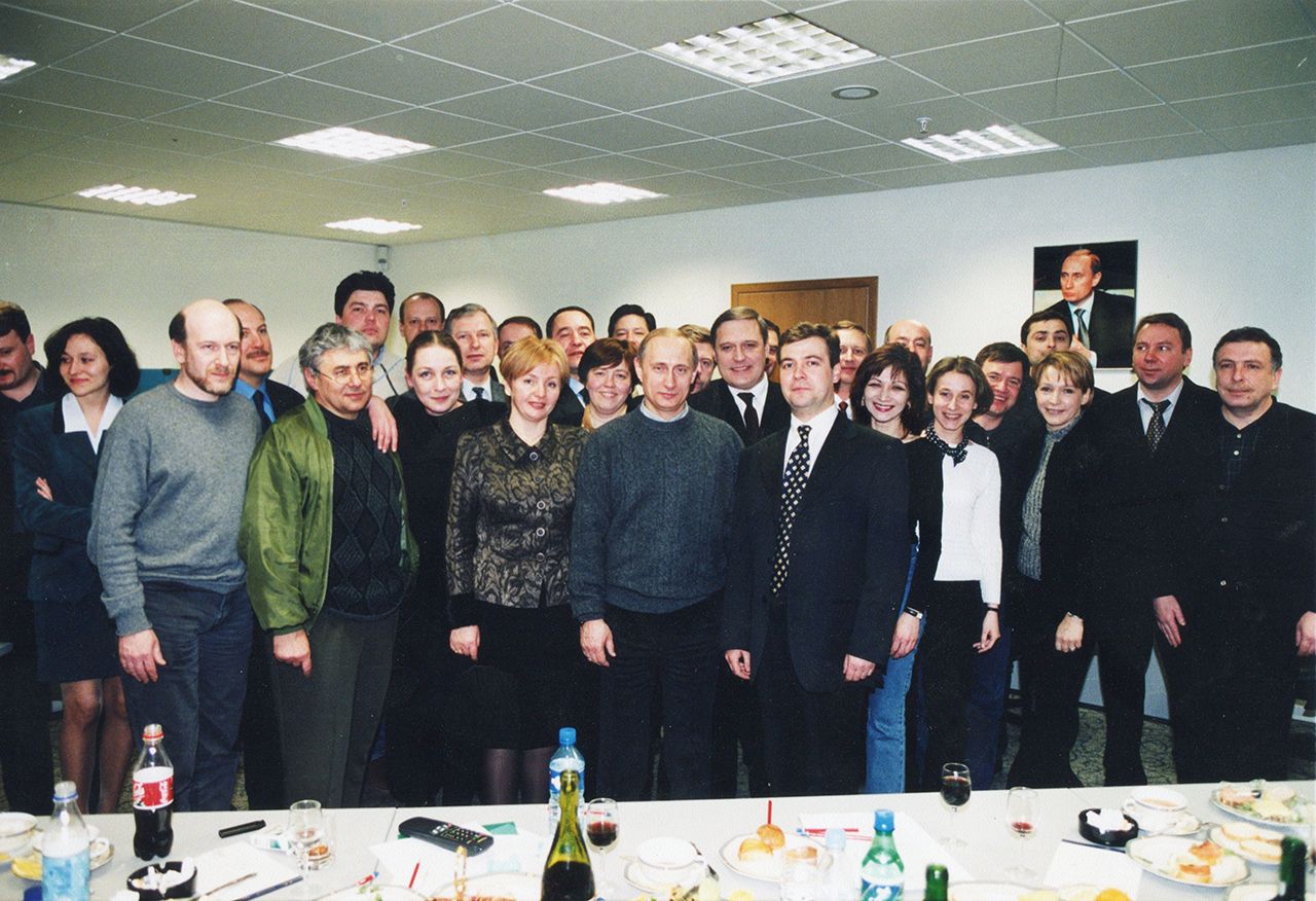 Из архива Глеба Павловского Владимир Путин и сотрудники его предвыборного штаба в ночь после выборов президента в «Александр-хаусе» на Якиманке, 27 марта 2000 года. Глеб Павловский — пятый слева в зеленой куртке; рядом с ним — глава АП Александр Волошин