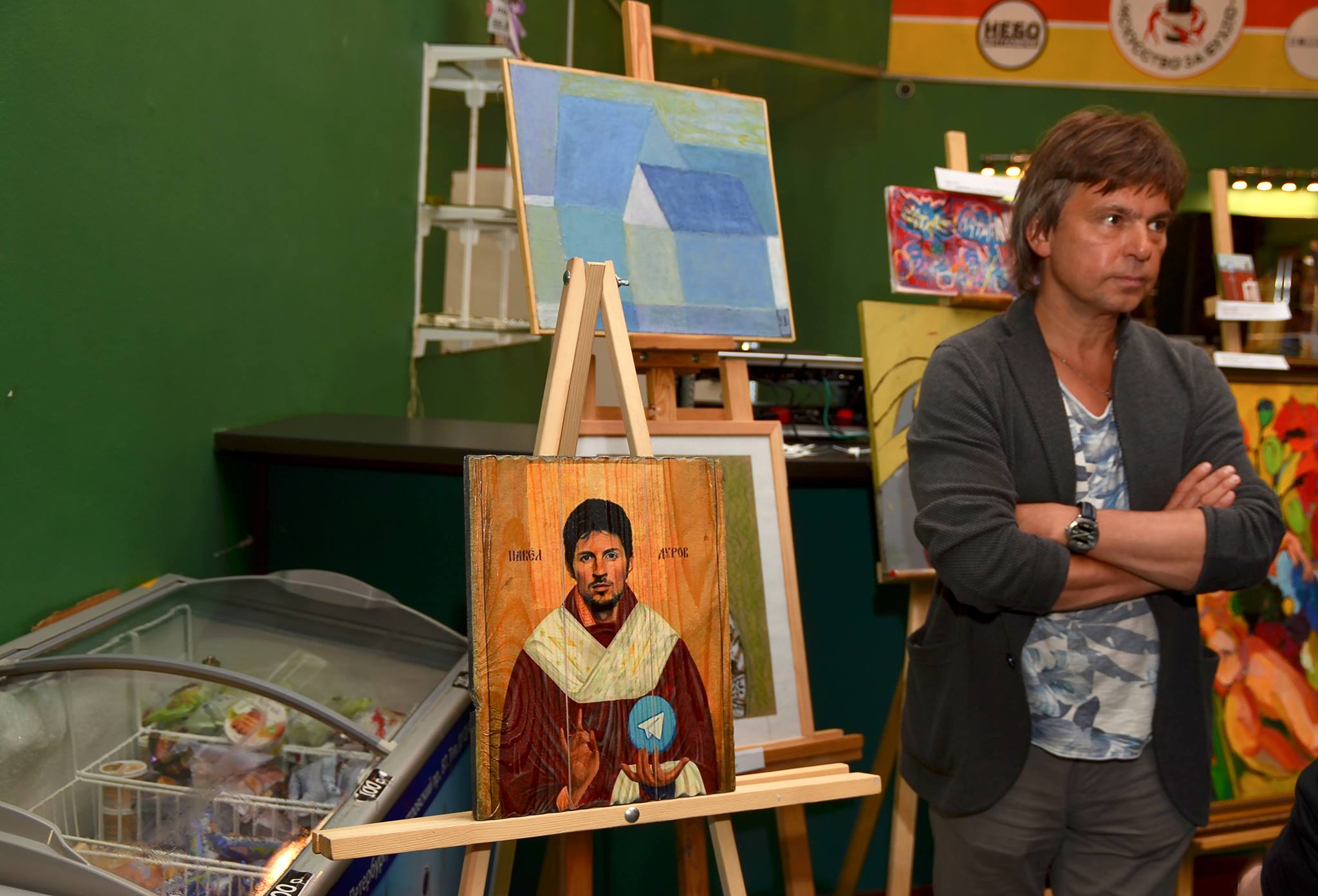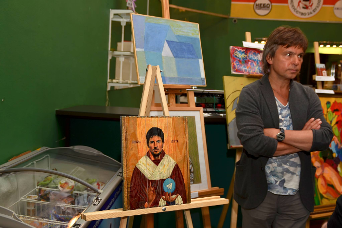В ДК Ленсовета 6 июля прошел треш-аукцион «Искусство за бухло», организованный петербургскими авангардистами. В ходе торгов была продана стилизованная под икону картина с основателем Telegram Павлом Дуровым.