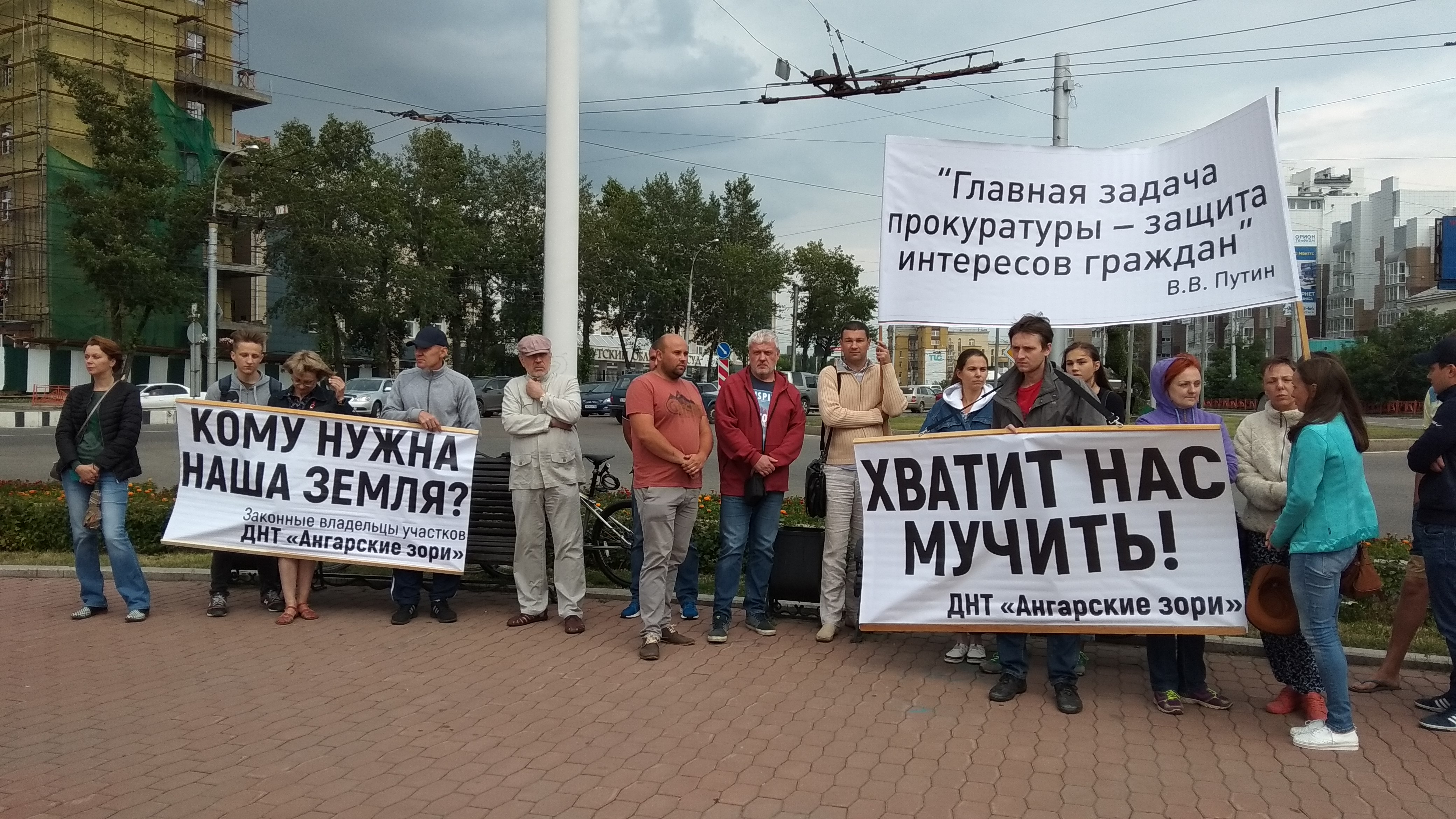 "Кому нужна наша земля? Почему все структуры власти игнорируют решения судов, в том числе и определение Верховного суда о законном выделении земли ДНТ? Почему игнорируют объективную доказательную базу, подтверждающую, что участок, выделенный ДНТ, находится на землях сельхозназначения?" – эти вопросы активисты хотели публично задать руководителям трех инстанций: полиции, прокуратуры и министерства лесного комплекса. Начальнику ГУ МВД России по Иркутской области Андрею Калищуку, прокурору Иркутской области Игорю Мельникову и министру лесного комплекса Приангарья Сергею Шеверде они направили официальные заявления-приглашения на пикет. Но никто из них не пришел.