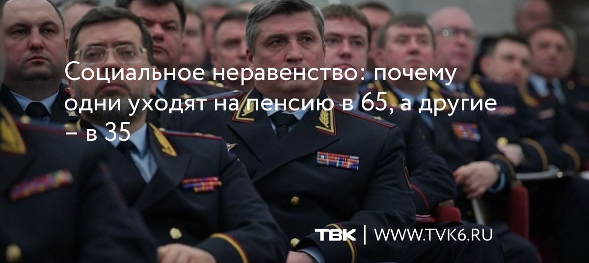 Во-первых, это возраст выхода на пенсию. Сейчас сотрудники Минобороны, МВД, ФСБ, ФСО, Росгвардии, ФСИН, МЧС, прокуратуры начинают получать выплаты по старости с 40-45 лет.