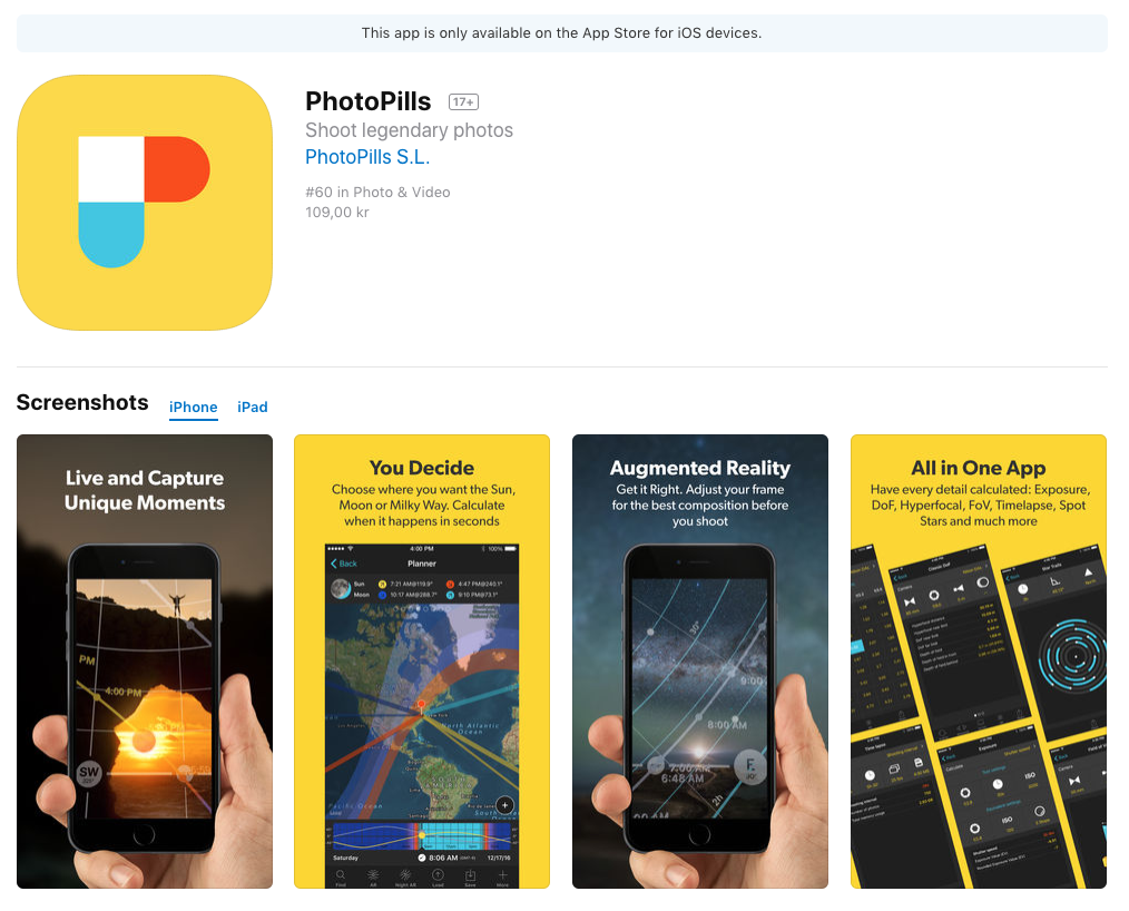 PhotoPills поможет рассчитать экспозицию, глубину резкости и вычислить параметры настроек камеры или смартфона.