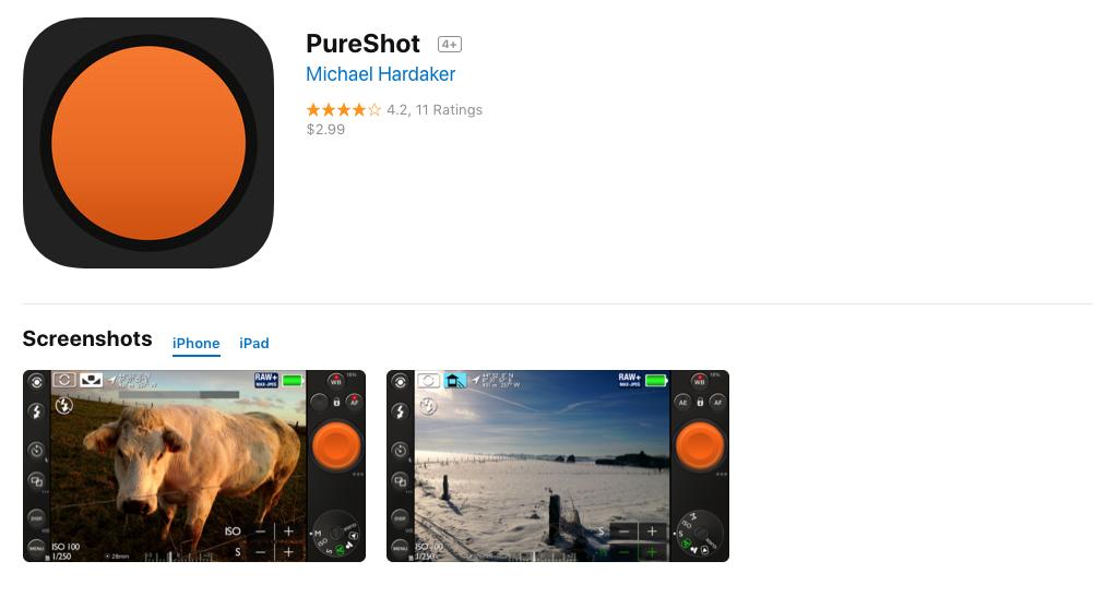 Приложение для профессиональной фотосъемки. Обладает функционалом цифровой камеры – ручное и автоматическое управление, съемка в RAW формате, разделение точки фокуса и экспозиции, баланс белого, скорость съемки.
