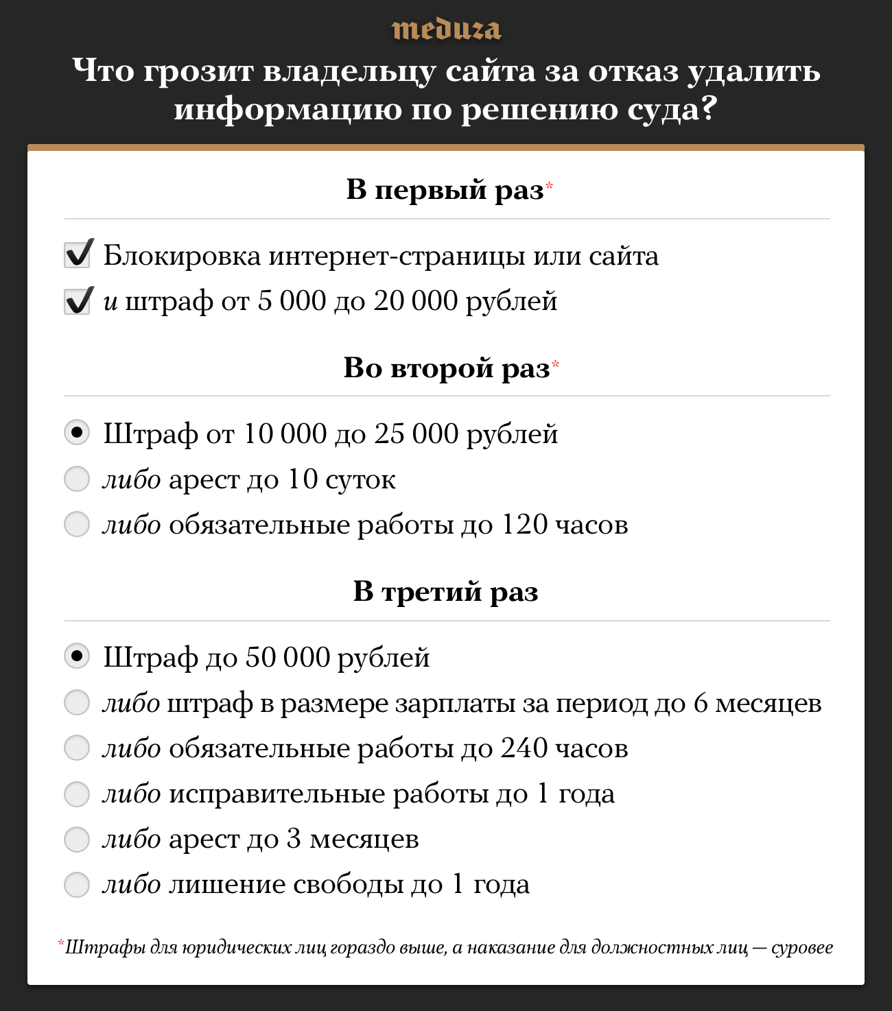 Что грозит владельцу сайта за отказ удалить информацию по решению суда? В одной картинке