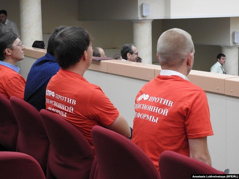 Одновременно с заседанием в квартале от здания областной думы проходил пикет против повышения пенсионного возраста. Противники реформы также собрались возле парламента и пытались вступить в дискуссию о пенсионном возрасте с депутатами от "Единой России", которые шли на заседание. В зале облдумы присутствовали помощники депутатов от КПРФ в майках с лозунгами против реформы. Несмотря на протест, большинством голосов федеральный законопроект был поддержан, передает корреспондент Радио Свобода.