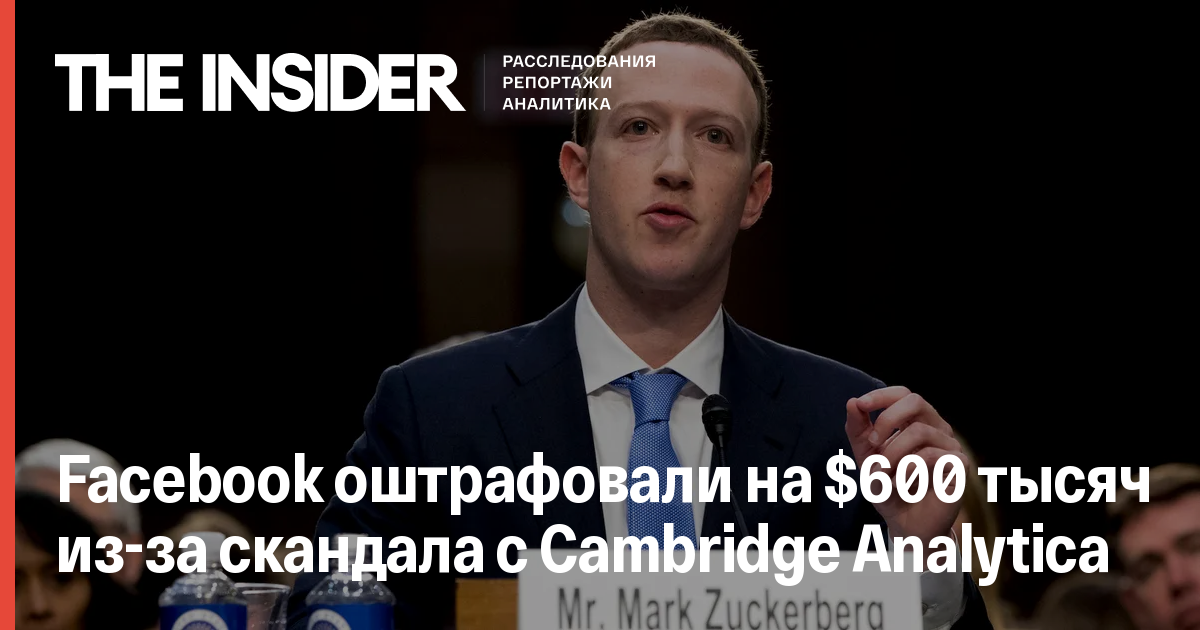 Facebook оштрафовали на $600 тысяч из-за скандала с Cambridge Analytica