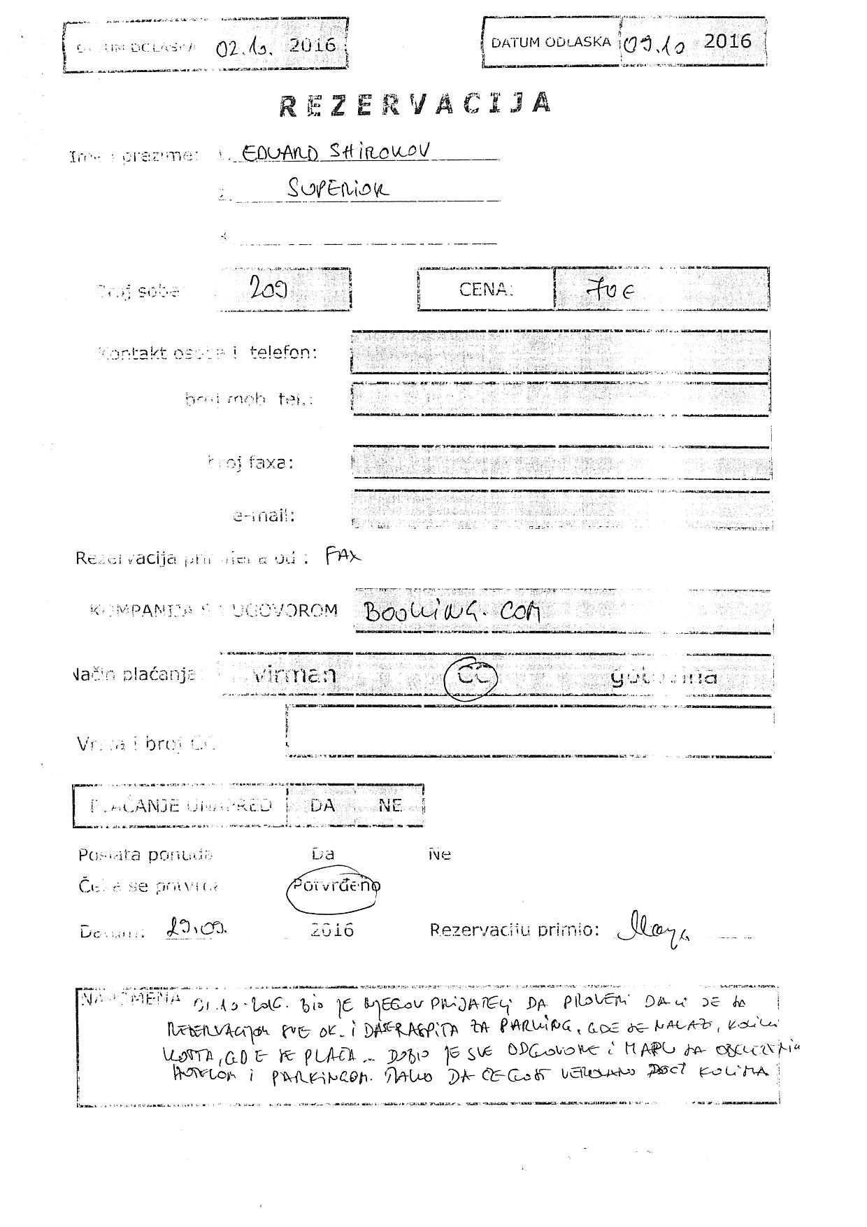 Есть и еще несколько документов, указывающих на то, что Шишмаков врал в своих показаниях. Вот, например, выписка из Booking.com, указывающая на то, что у Шишмакова была бронь со 2 по 9 октября 2016 года , то есть буквально за несколько дней до планируемого переворота, в отеле Le Petit Piaf в Белграде. Однако в показаниях он утверждает, что в Белграде был во второй половине октября.
