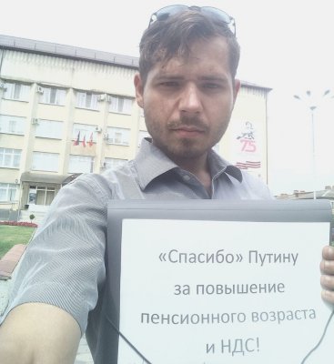 14 июля блогера задерживали с плакатом «„Спасибо“ Путину за убитых российских военнослужащих на Донбассе и в Сирии!». После этого на него составили третий протокол по части 1 статьи 20.2 КоАП.