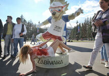 3 июля в Петербурге за акцию против пыток были задержаны четыре участника "Весны". Перформанс прошел на Крестовском острове. Девушка, облитая красной краской, легла на постамент скульптуры талисмана чемпионата мира по футболу в России - волка Забиваки.
