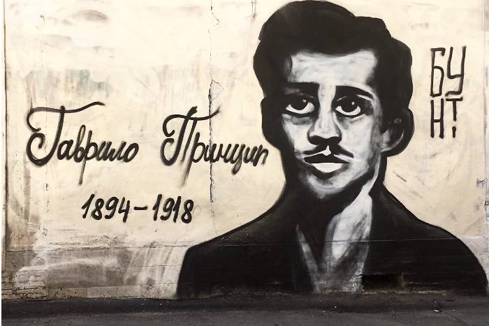 В Банковском переулке появился портрет сербского националиста Гаврилы Принципа